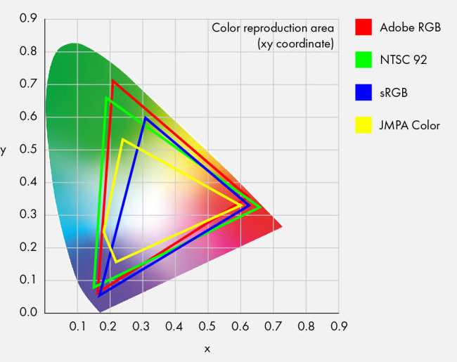 특히 빨강과 녹색 영역이 더 넓어, 생생하고 깊은 색감을 표현할 수 있음
