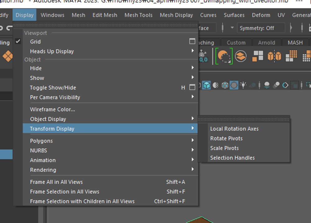 Display > tramsform display > local rotation axesd