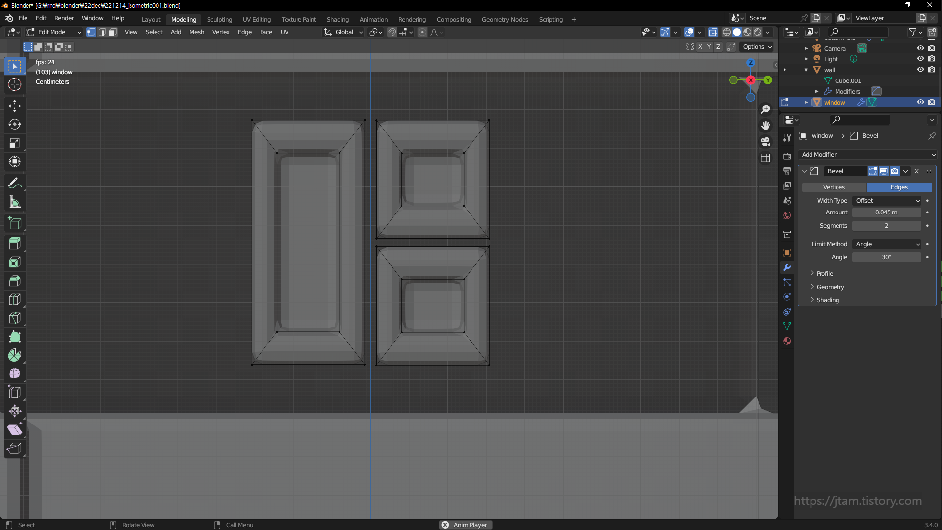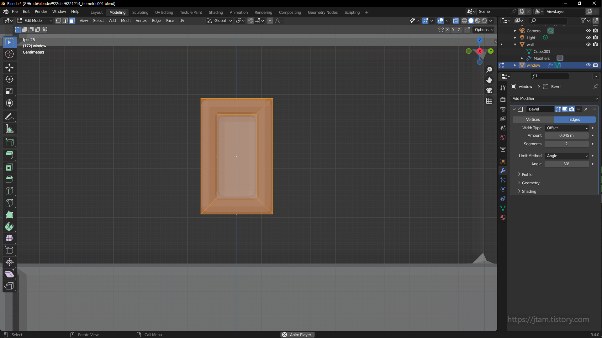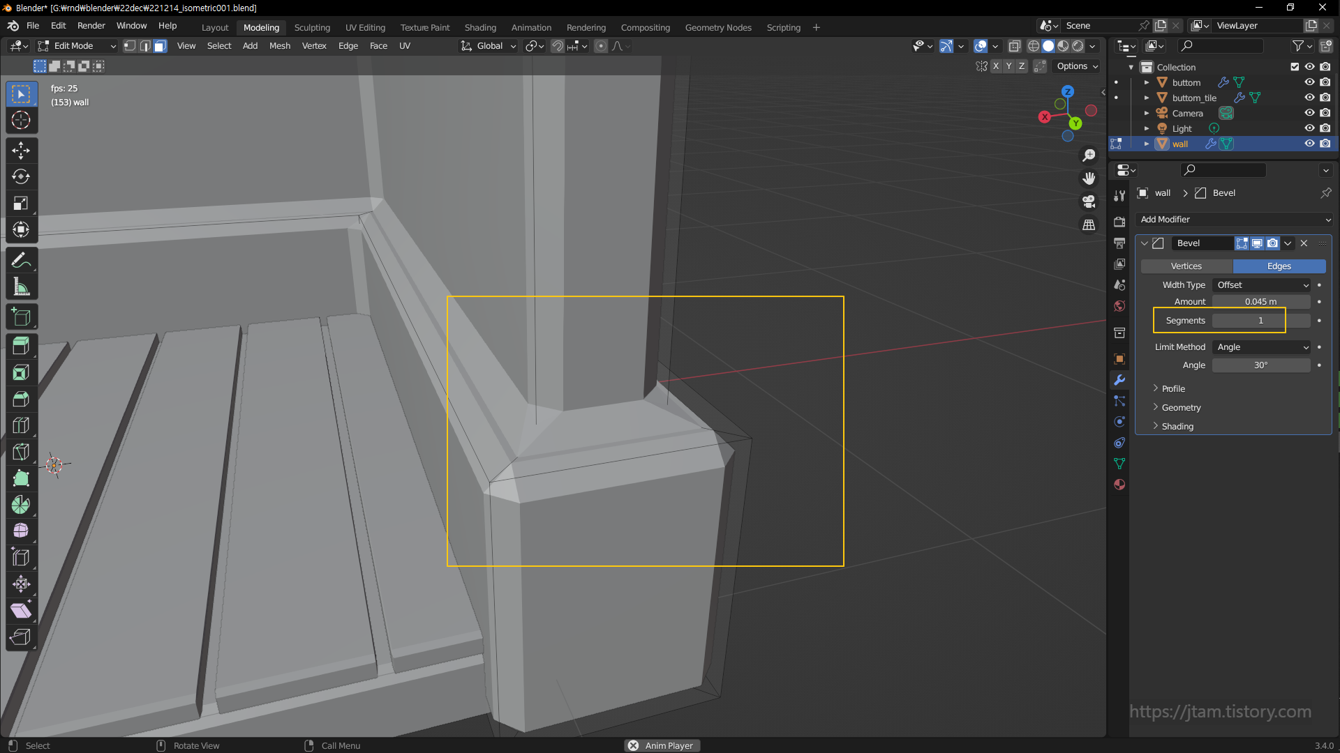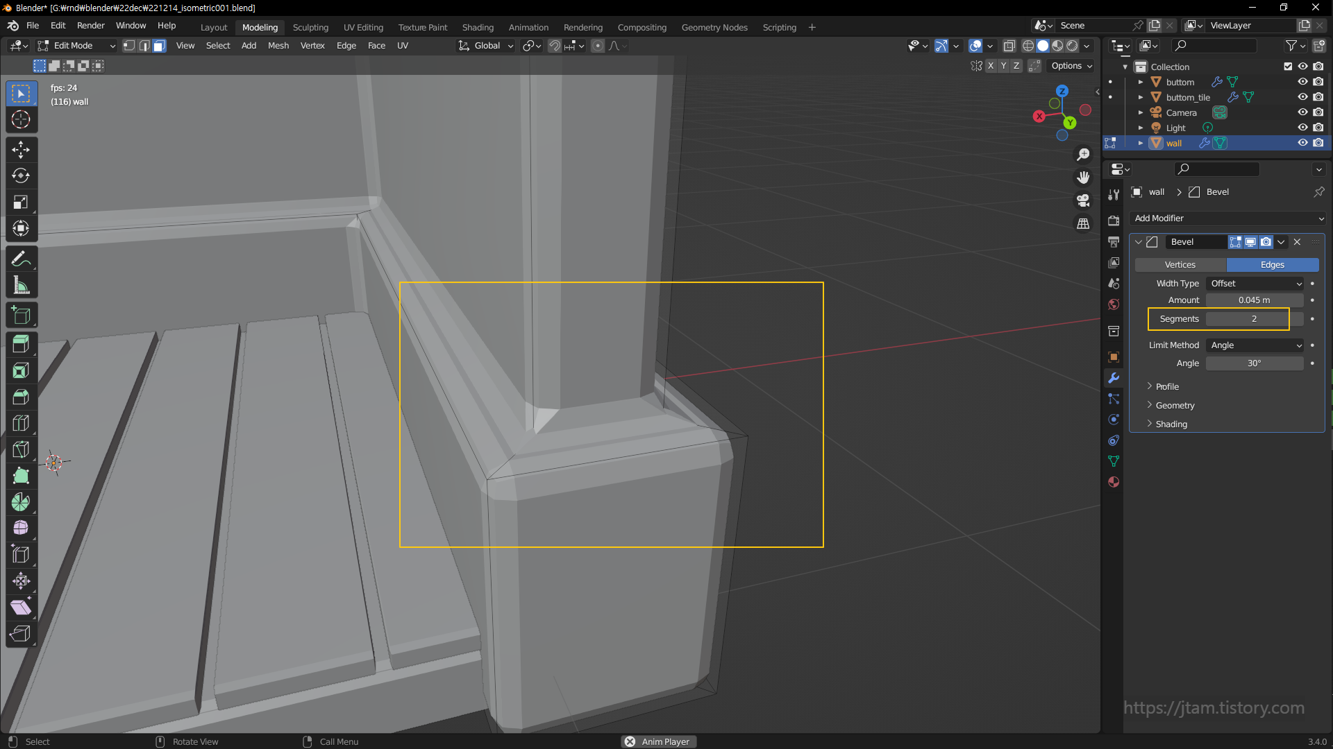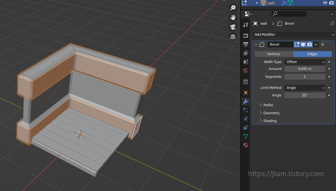 bevel 이었음.. 그리고 여기서 사용한 bevel;ctrl b은 modifer에서 추가한 bevel과는 다른 개념이고,